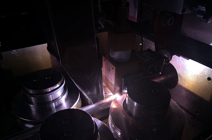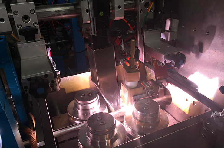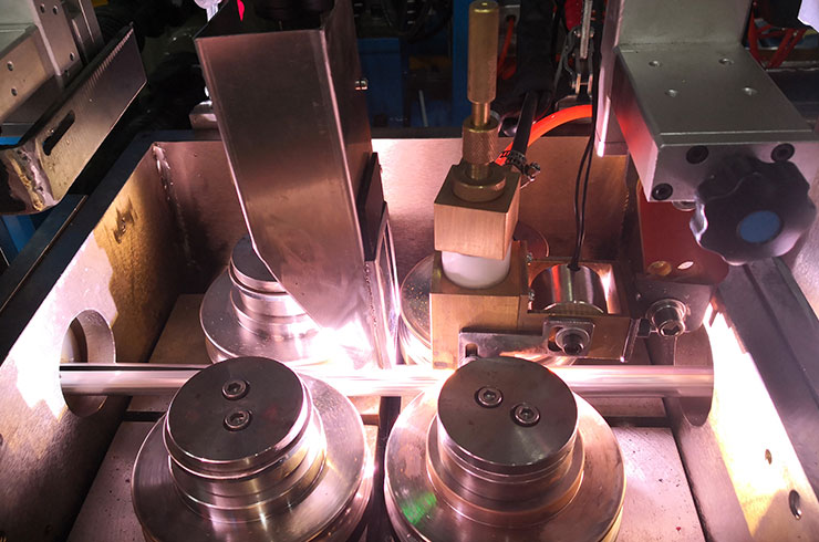 為了提高生產(chǎn)線效率,又可以獲得良好的焊縫質(zhì)量,我們公司研發(fā)的電弧焊接的穩(wěn)弧器,針對上述的問題,在電弧中間外加可以調(diào)節(jié)大小的縱向電磁場所,通過電磁力把電弧穩(wěn)定在中間或向前推,有了電磁穩(wěn)定,電弧就不會向后或左右擺動,咬邊和“駝峰”的問題就不會出現(xiàn)。所以提高了生產(chǎn)效率又保證了質(zhì)量,如圖2所示。提高速度20-30%在實際生產(chǎn)中使用得到了驗證。為了適應(yīng)不同的焊接電流和生產(chǎn)速度,可以調(diào)節(jié)電磁力的大小,適應(yīng)不同的焊接電流和速度。