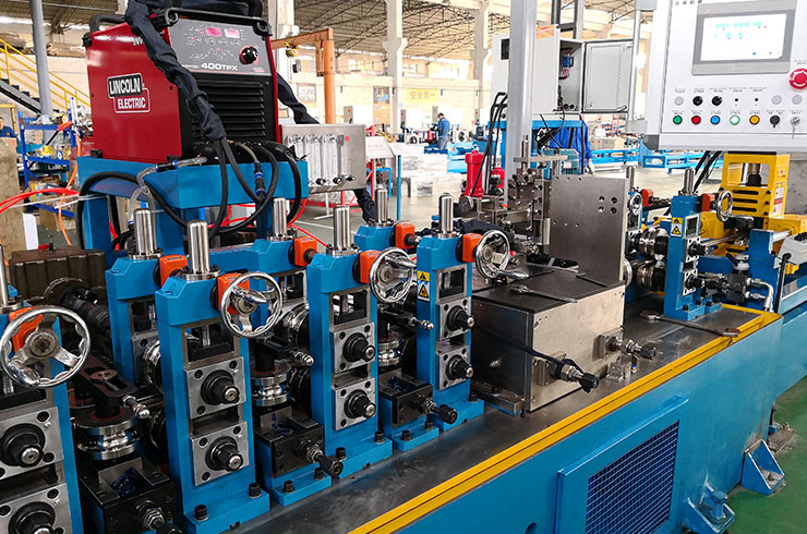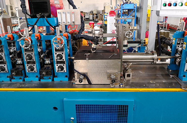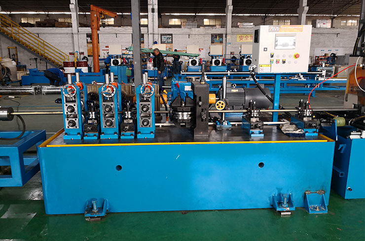 經(jīng)開卷、清洗裝置、進料導向、成型、焊接、內(nèi)焊整平、外焊縫打磨、整形定徑、固熔處理、終定徑、校直、探傷、噴碼、定尺、切斷(盤卷)、接料等連續(xù)成型工藝、結(jié)構(gòu)精細、操作簡便